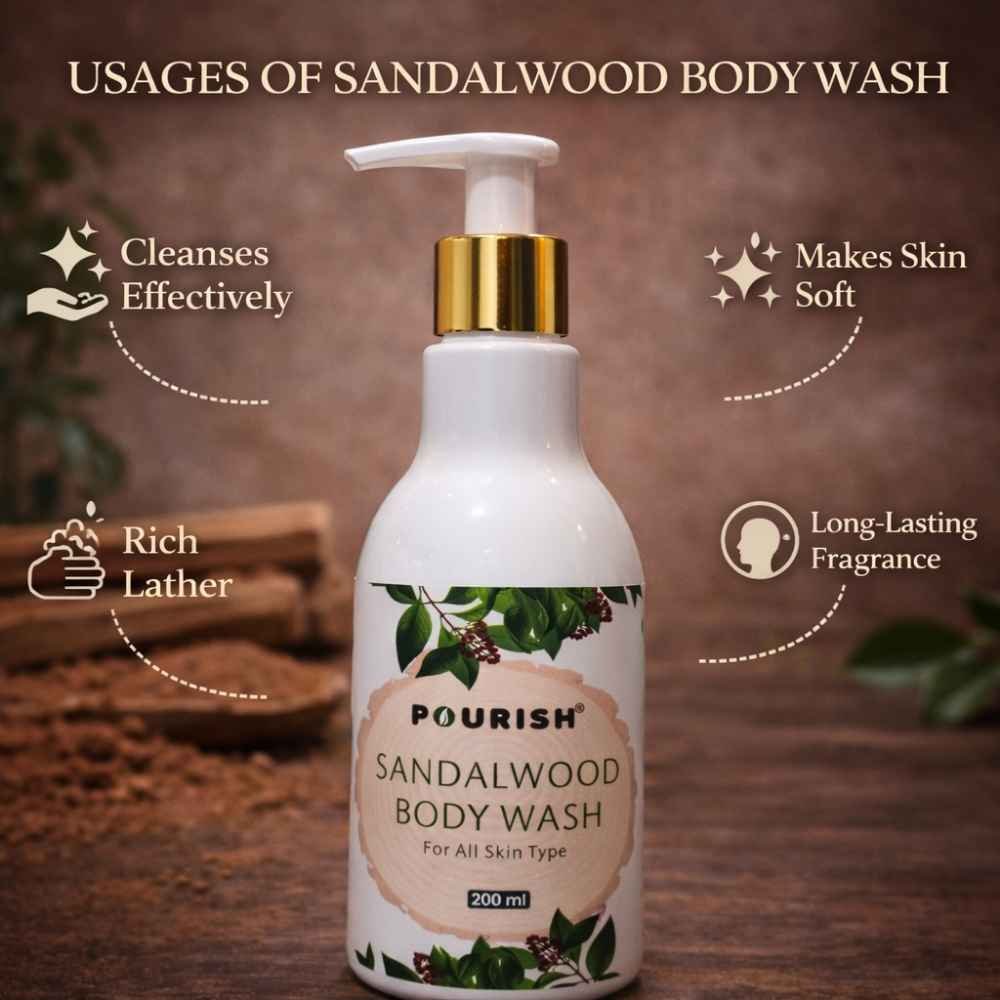 Pourish Sandalwood Body Wash 200ml | Natural Moisturizing Shower Gel for All Skin Types