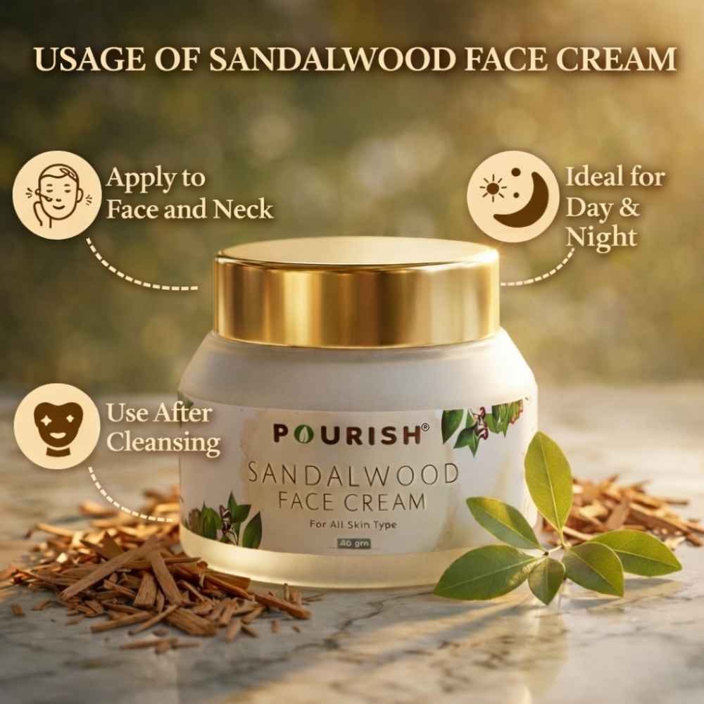 Pourish Sandalwood Face Cream is a premium natural skincare solution enriched with Pure Sandalwood Extracts that deeply moisturizes, brightens, and nourishes your skin. This lightweight, non-greasy formula helps improve skin texture, reduce dullness, and provide a natural glow. Perfect for daily use, this cream keeps your skin soft, hydrated, and refreshed throughout the day.